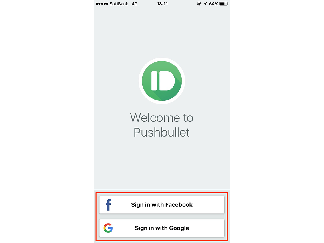アプリを起動するとサインイン画面が開くので、FacebookまたはGoogleアカウントでログインします。