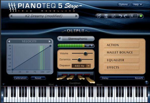 音はかなりリアルで、設定でペダルノイズ量やhumanization(人が実際弾いたようなタメ、ノリを再現)が弄れます。