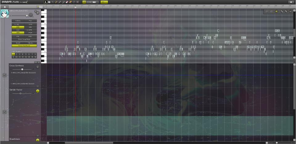 そしてエディターの『Piapro Studio』、こちらはビブラート、歌唱方法の強弱、ブレスなどなど細かい設定が簡単に可能。