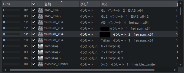 あまりたくさん挿せないので、重要なトラックのみ挿すかバウンスして書き出してしまう事をオススメします。