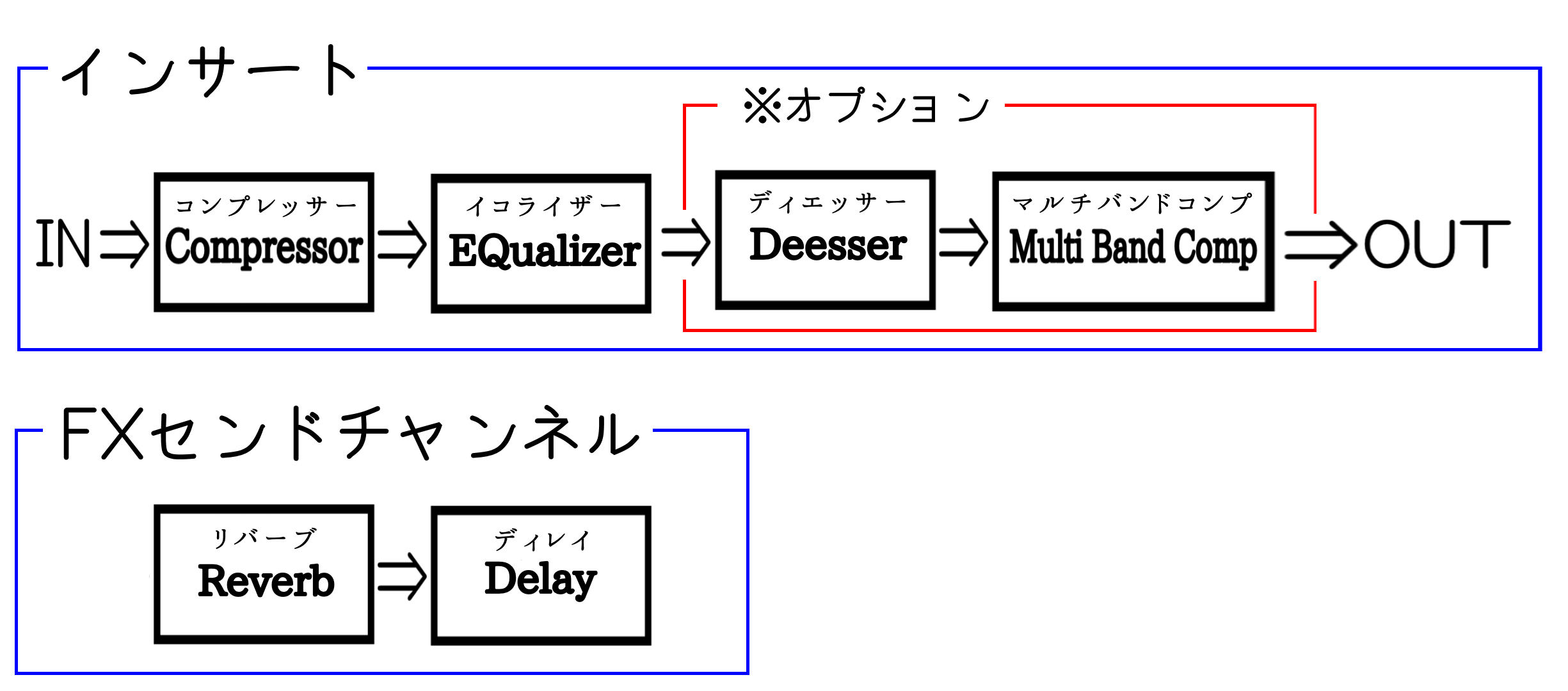 基本的な配列はこのようなイメージで行っていますが、もちろん時と場に応じて順番やプラグインを変えたりします。
