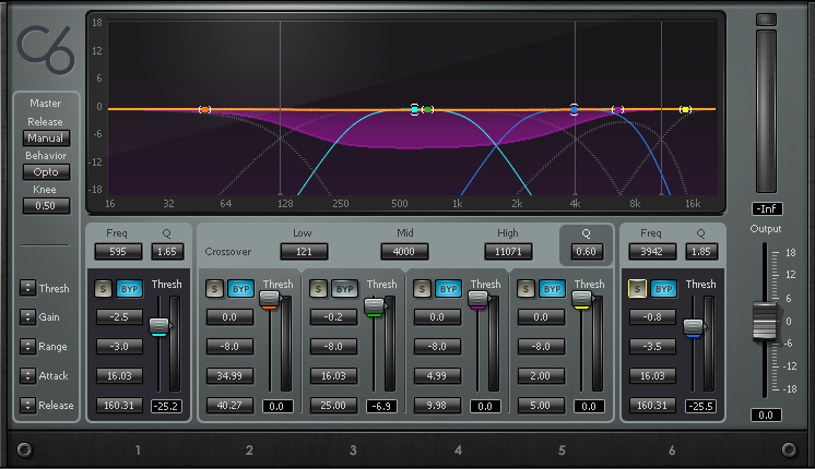 こちらもEQで処理し切れなかったミッド部分にピンポイントでコンプレッションし、オケと自然に混ぜたい時に使用します。