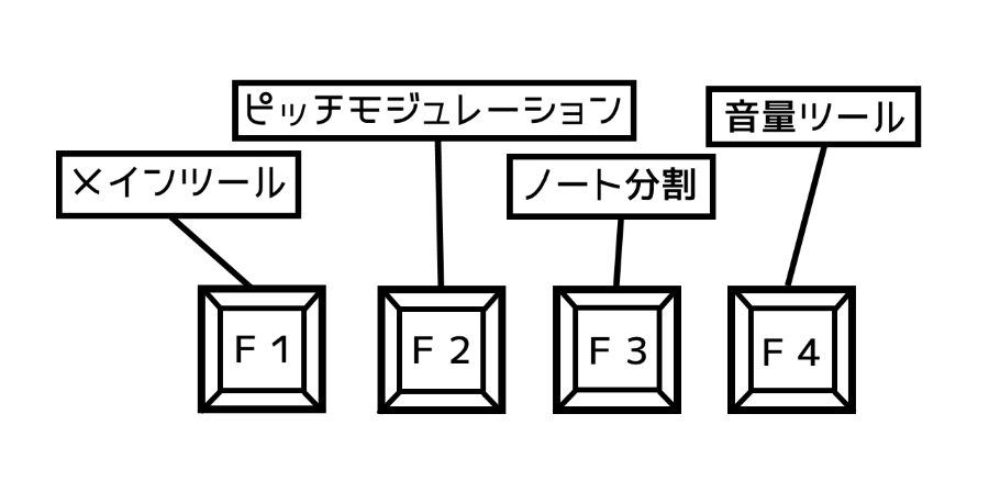 メインを[F1]に置いて、頻繁に使う波形分割とピッチのモジュレーションをいつでも呼び出せれる設定です。