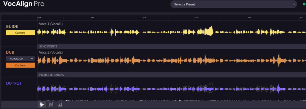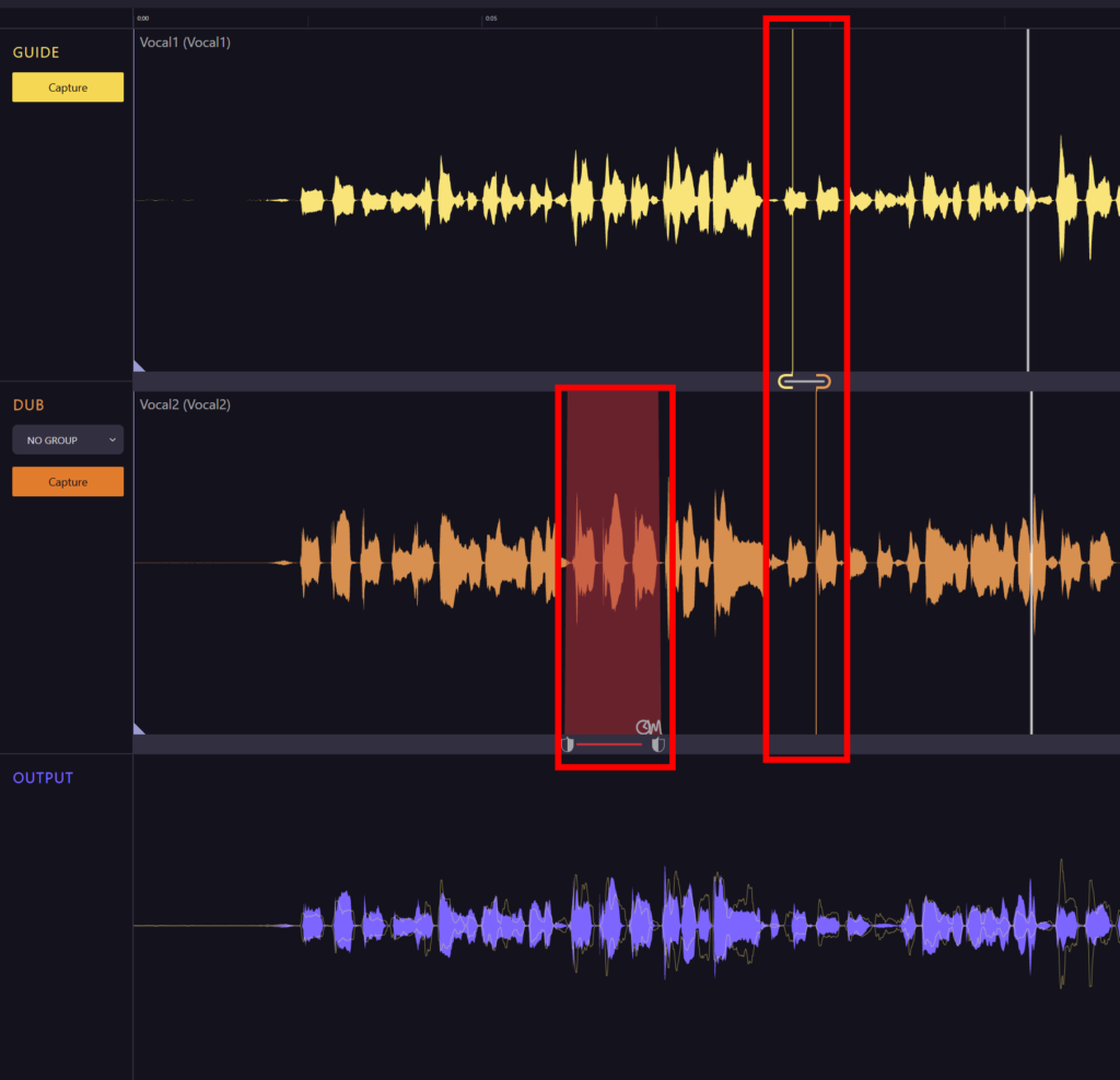 ・Sync Points…GuideトラックとDubトラックの間で特定のタイミングを強制的に一致させるためのツールです。特に、VocALignが自動的にタイミングを合わせきれない場合や、特定の箇所を意図的に調整したい場合に便利です。