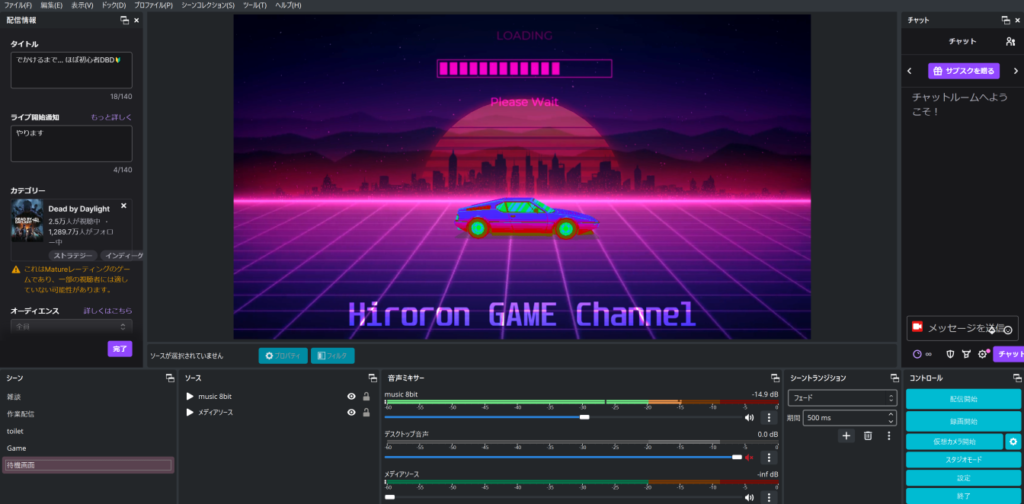 余談ですが最近はTwitchで配信することが多いのでこのような画面になってます。