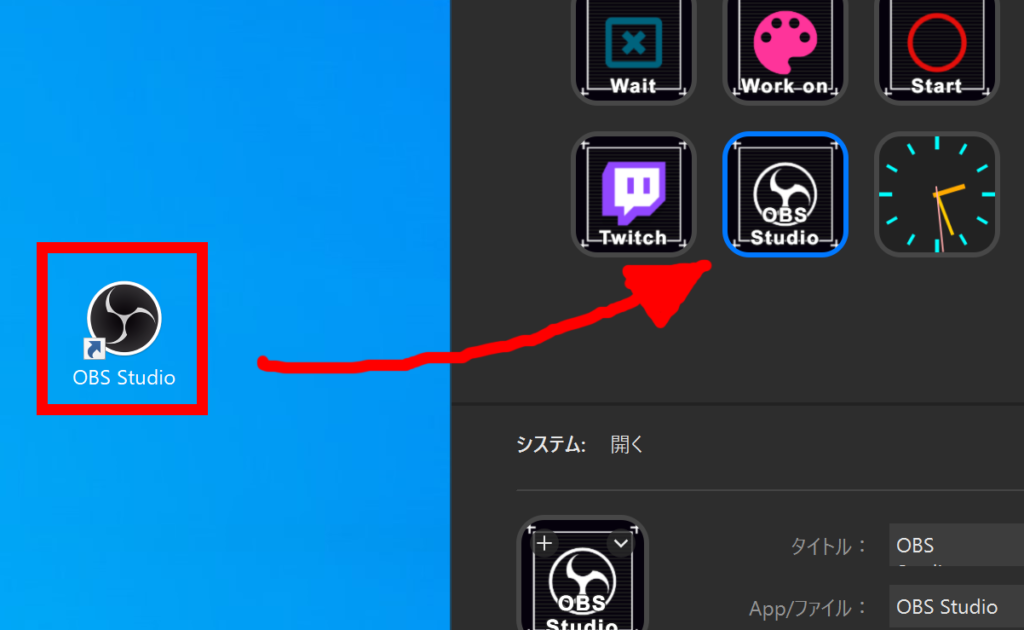 OBS起動ボタンを設定