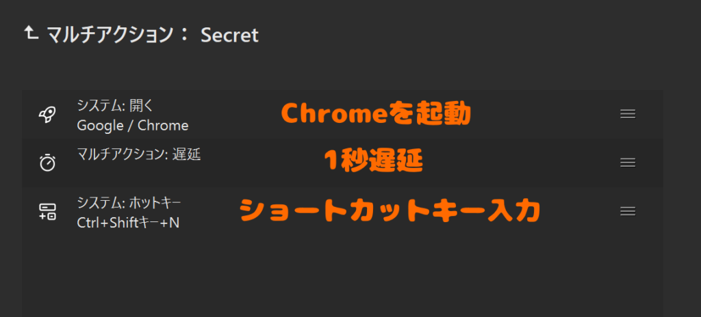 マルチアクションを駆使してシークレットウインドウを起動させる